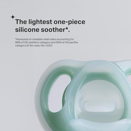 The lightweight pacifier that stays put in their mouth, so you don’t have to pick it up again and again (and again). • The lightest one-piece silicone pacifier* • Symmetrical silicone nipple (so it always sits the right way up) • Air holes so their skin can breathe • 100% BPA free, medical grade silicone • Available in 3 age stages: 0-6, 6-18, and 18- 36 months *Assessed on readable retail sales accounting for 98% of UK soothers category and 95% of US pacifier category (0-6m size), Nov 2023.