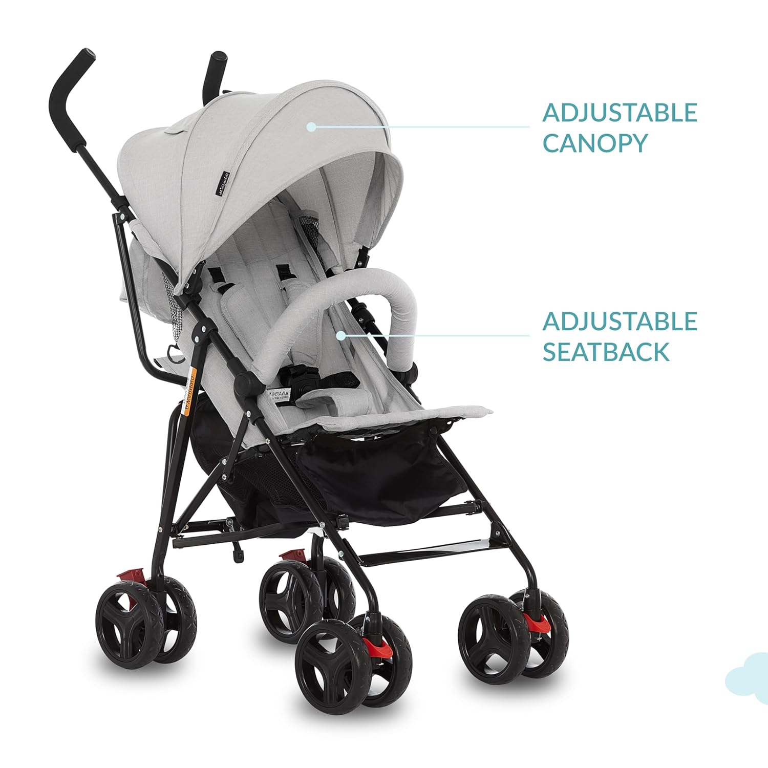 Dream On Me Vista Moonwalk Baby Stroller in Light Gray, Lightweight Infant Stroller with Compact Fold, Multi-Position Recline Umbrella Stroller with Canopy, Extra Large Storage and Cup Holder