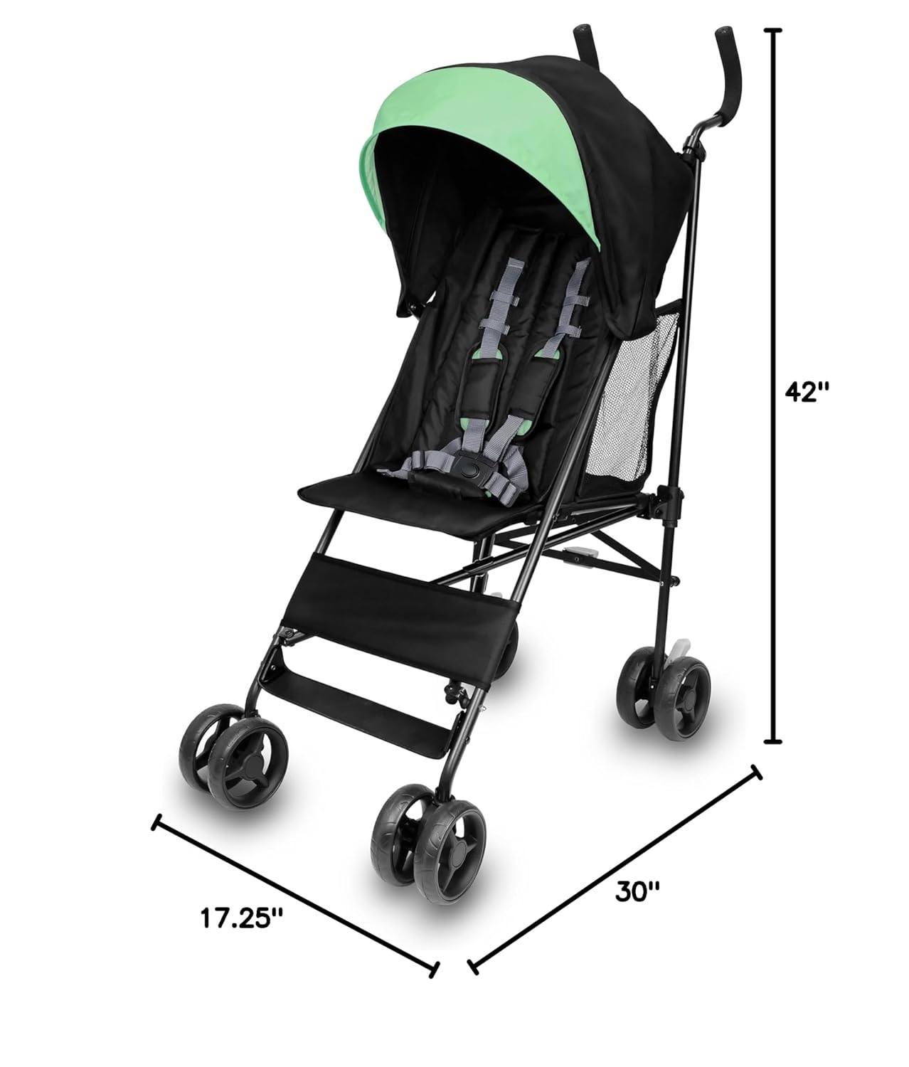 The ideal lightweight stroller for travel or everyday for children 6 months up to 50 pounds; folded dimensions are 51.2″ x 11.6″ x 7.1″