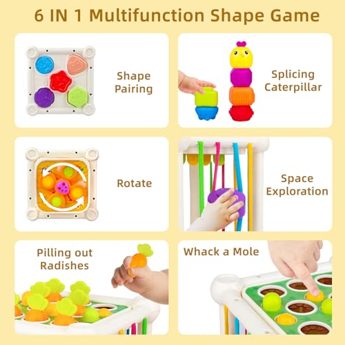 【Safe Material & Durable】The educational toy for toddlers 18+ months are made of high-quality ABS plastic.It is designed with toddlers safety in mind, featuring rounded edges.The colorful elastic bands are very soft, will not hurt the baby’s hands during the pulling process. which is comfortable and skin-friendly, Absolutely safe for babies to play.