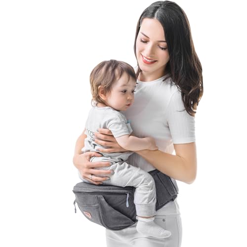 SUNVENO Baby Carrier, Ergonomic Baby Hip Seat Waist Stool CPC-Certified Infant Carrier, Adjustable Waistband & Various Pockets for Newborns, Infants, Babies, All Seasons Carrier, Grey