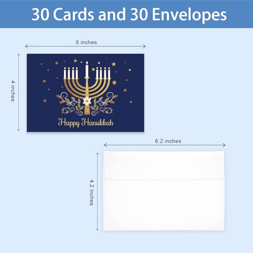 Specification: 36 Hanukkah Greeting Cards with Self-adhesive Envelopes, 4″ x 6″ Happy Hanukkah Greeting Note Cards for Chanukah Holiday