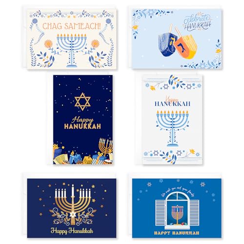 36 Hanukkah Greeting Cards with Self-adhesive Envelopes, 4″ x 6″ Happy Hanukkah Greeting Note Cards for Chanukah Holiday
