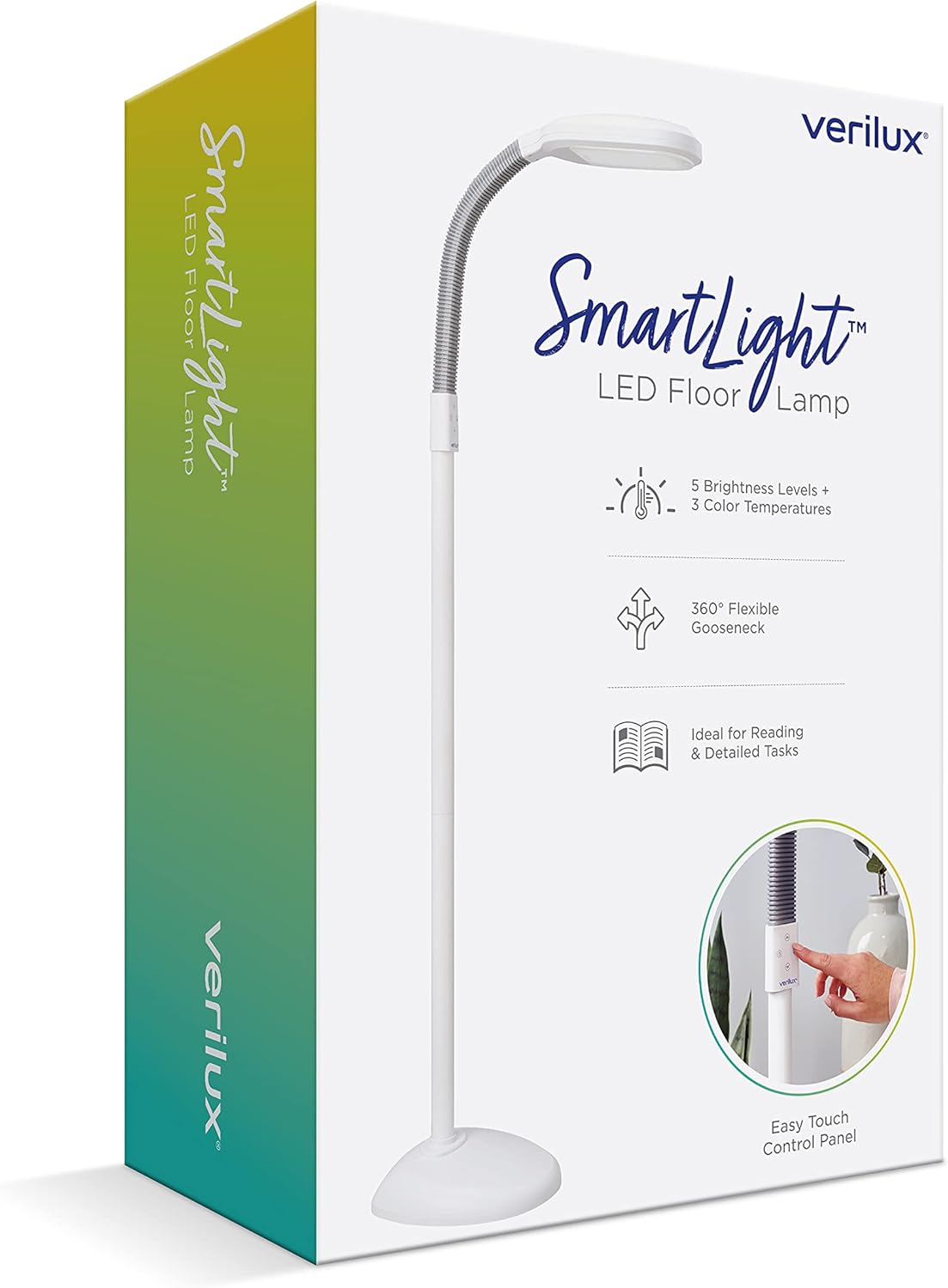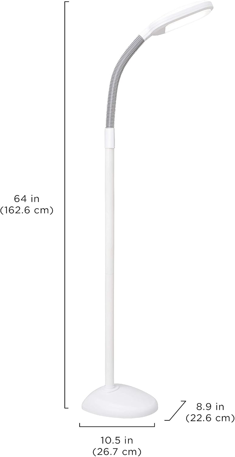 Verilux SmartLight Full Spectrum LED Modern Floor Lamp with Adjustable Brightness, Flexible Gooseneck and Easy Controls – Reduces Eye Strain and Fatigue – Ideal for Reading, Artists, Craft (White)