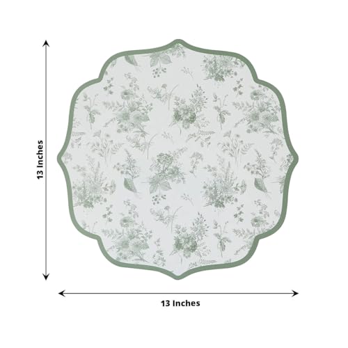 Efavormart 10-Pack Disposable Table Placemats 13″ White with Sage Green French Toile Pattern & Scalloped Rim – 400GSM Cardboard Placemats for Classy Events