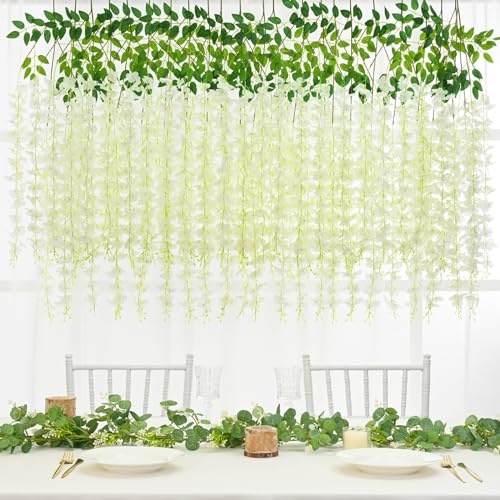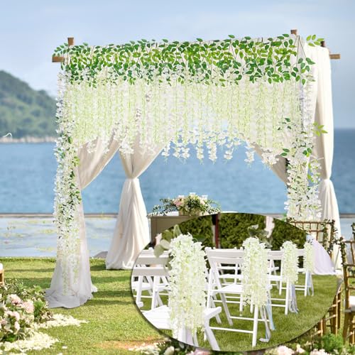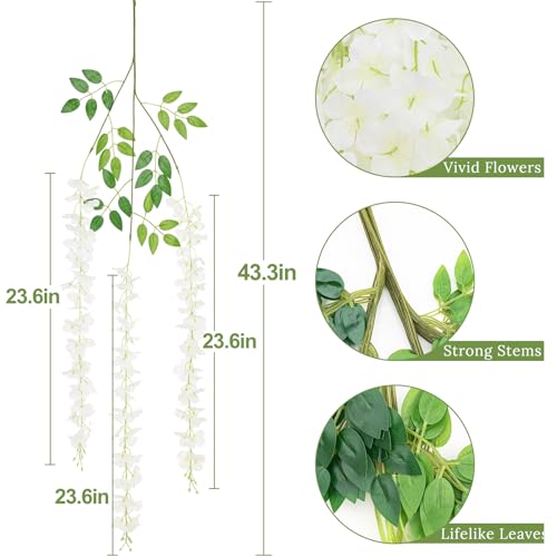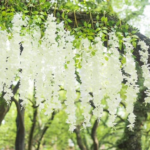 Specification: Sunm Boutique 6 Pack Wisteria Hanging Flowers, 3.6 Feet Wisteria Flowers Hanging Garland, Silk Artificial Wisteria Flower Vine String for Wedding Party Home Office Wall Decor (White)