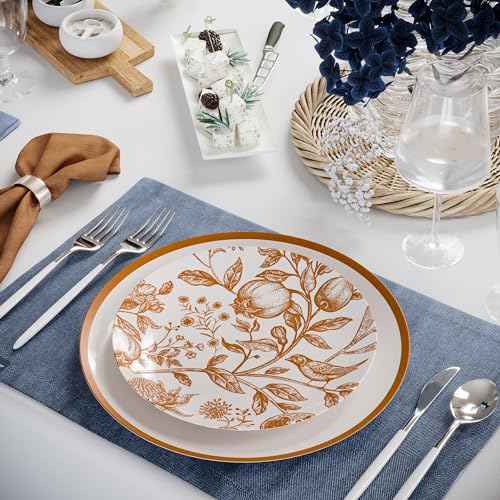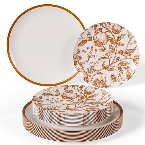 Trendables 80 Piece Plastic Disposable Plates Set For 40 Guests I 40 X 8 Inch Dessert Plates & 40 X 10 Inch Disposable Plastic Plates | Thanksgiving Plates | White & Brown Pomegranate Design