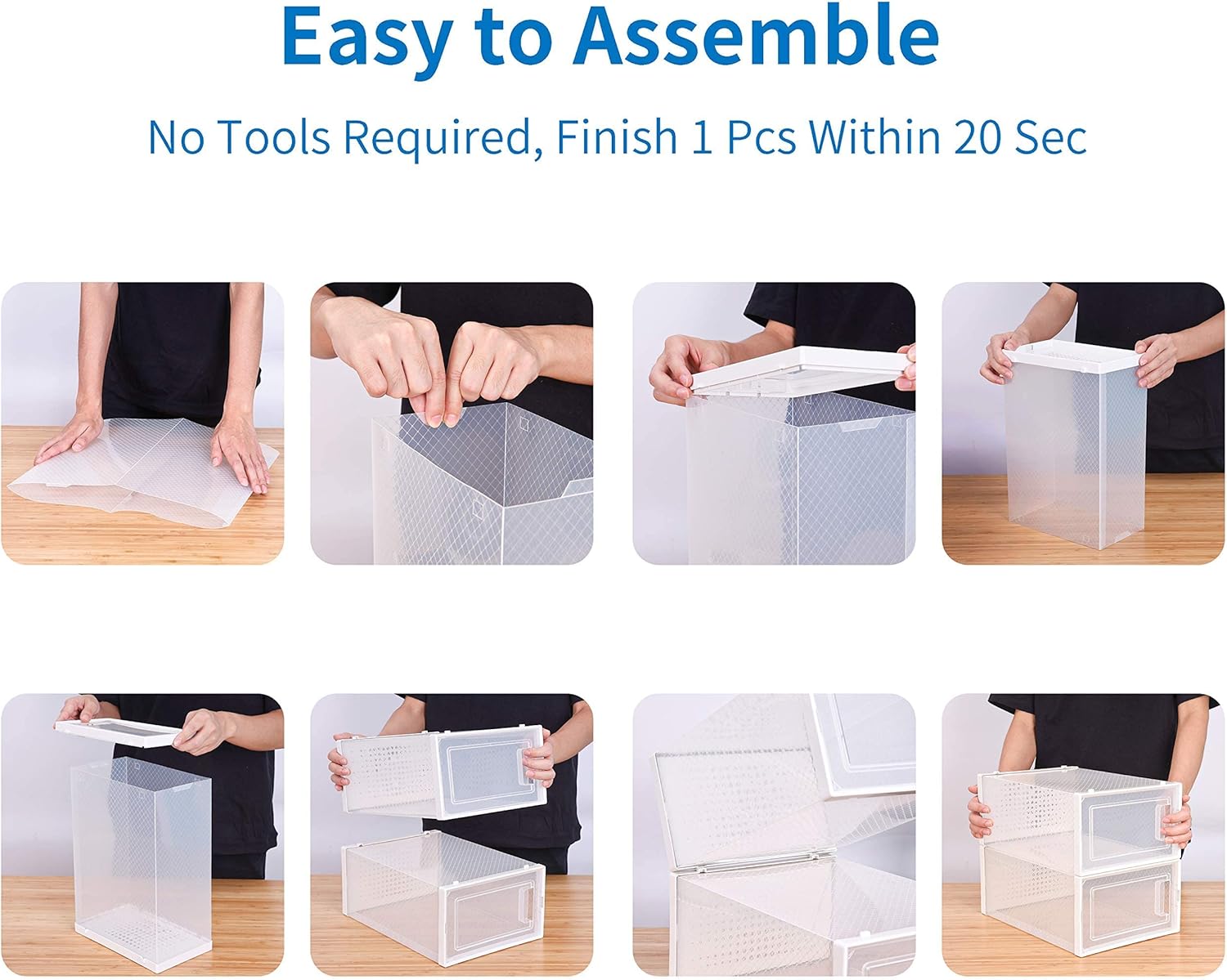 12 Pack Shoe Organizer Storage Bins Clear Plastic Stackable Shoe Boxes for Closet, Space Saving Foldable Shoe Storage Case, Sneaker Storage Shoe Box Container