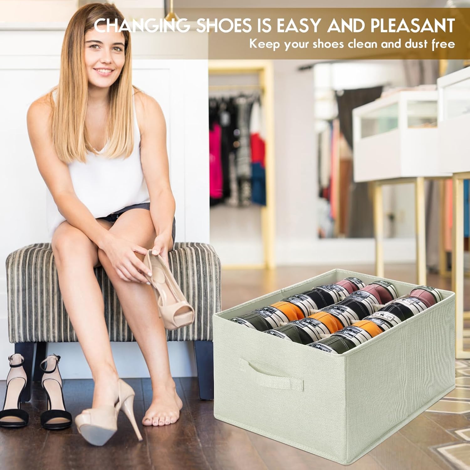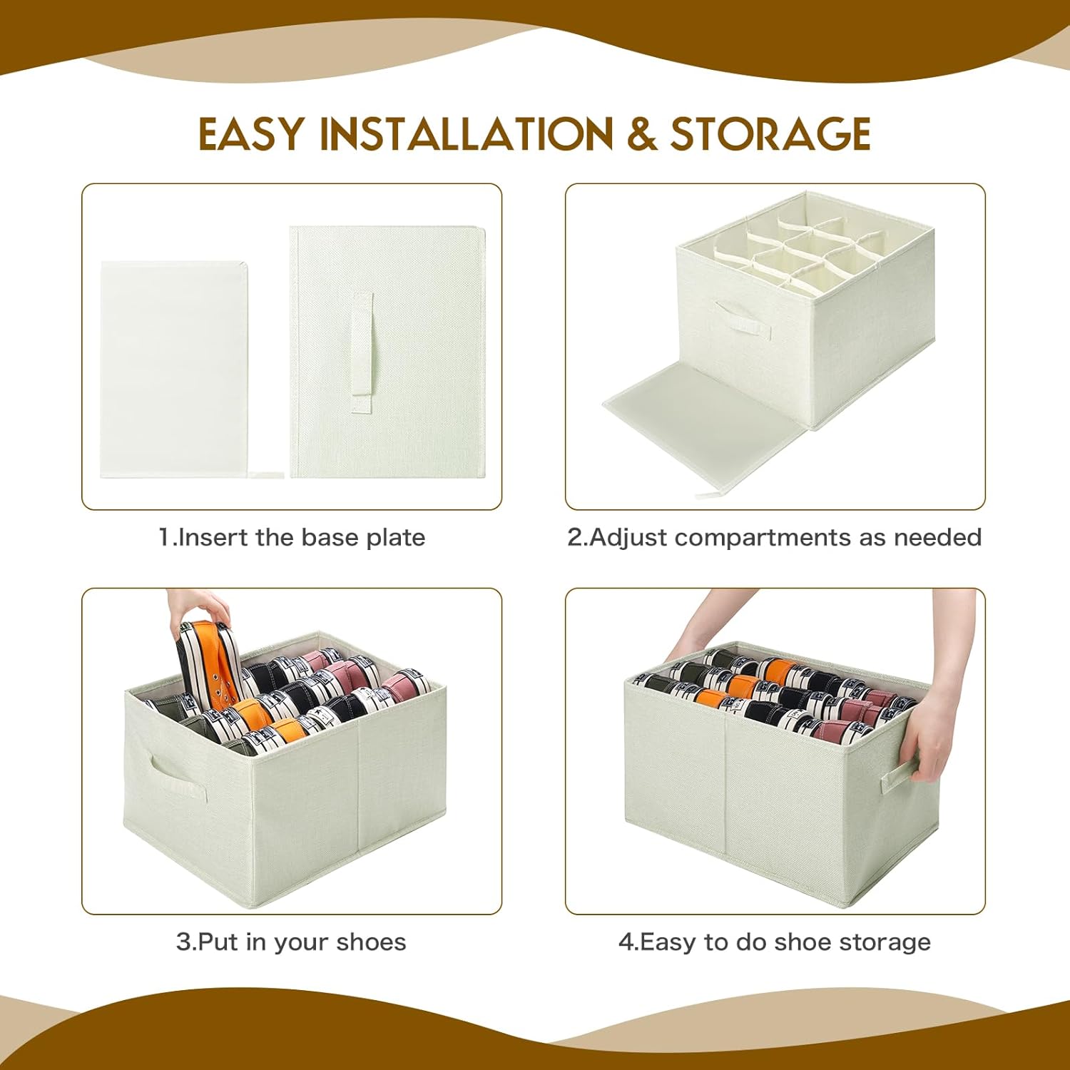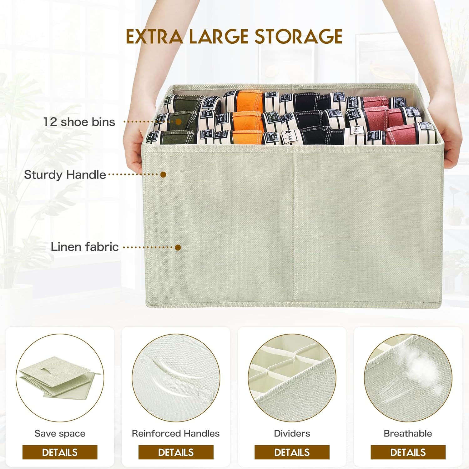 👟HIGH-QUALITY MATERIALS: Made of high quality linen to make the product more breathable. The box and the bottom board are made of hollow board, which makes the product more lightweight while being sturdy. Reinforced handles on both sides for easy move.