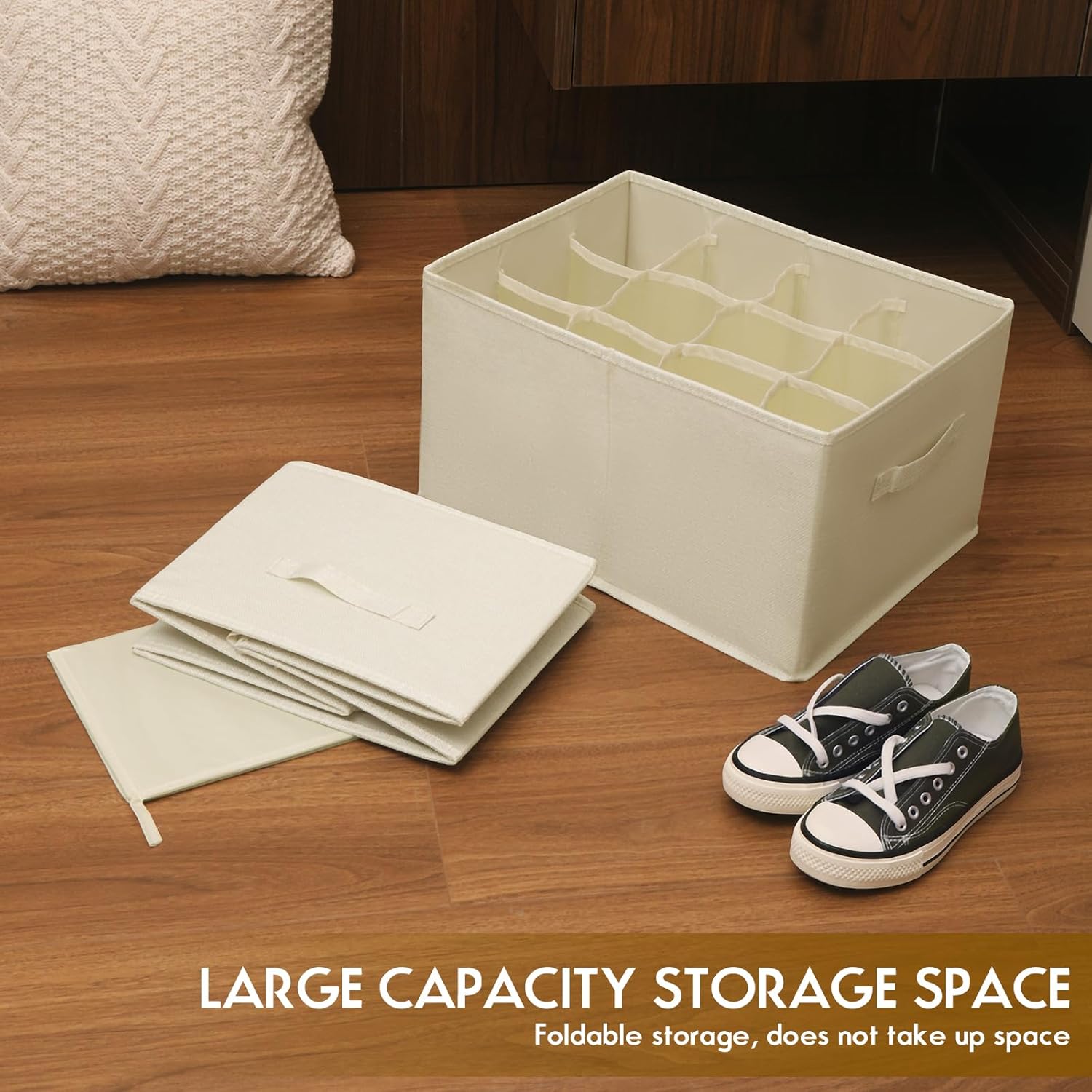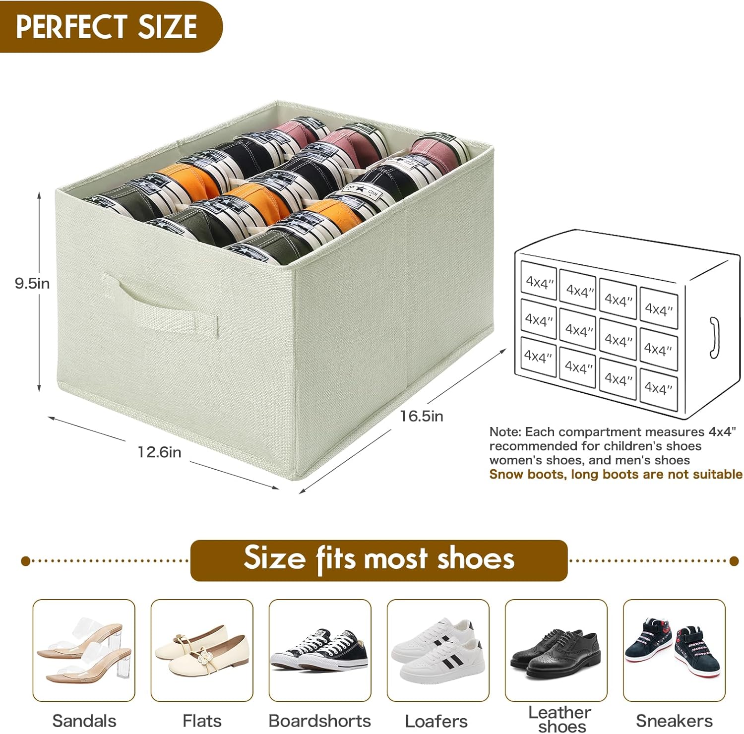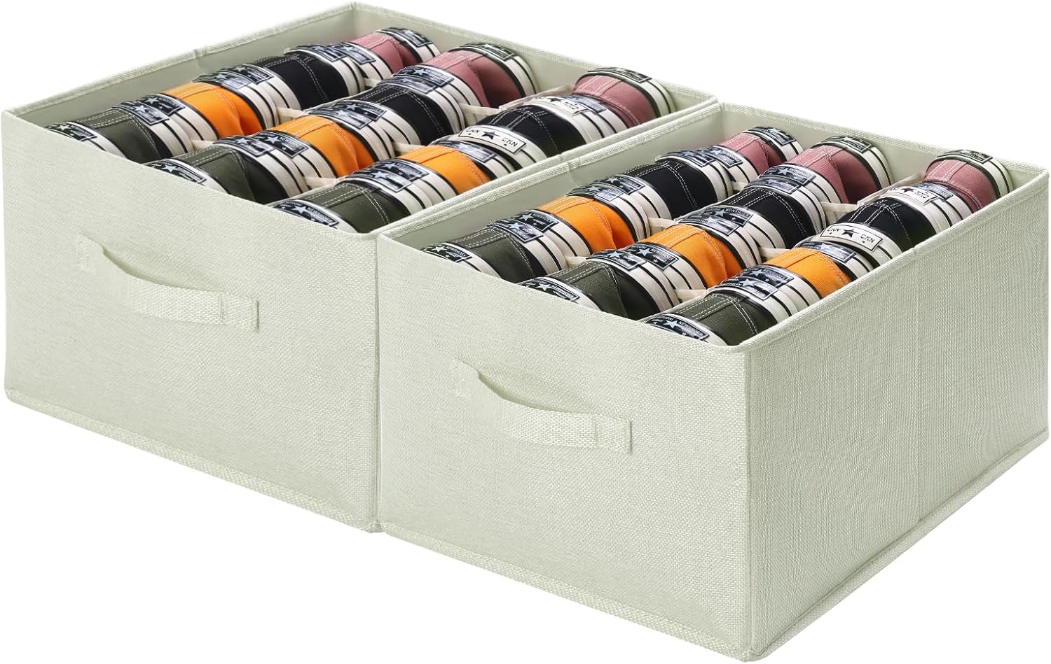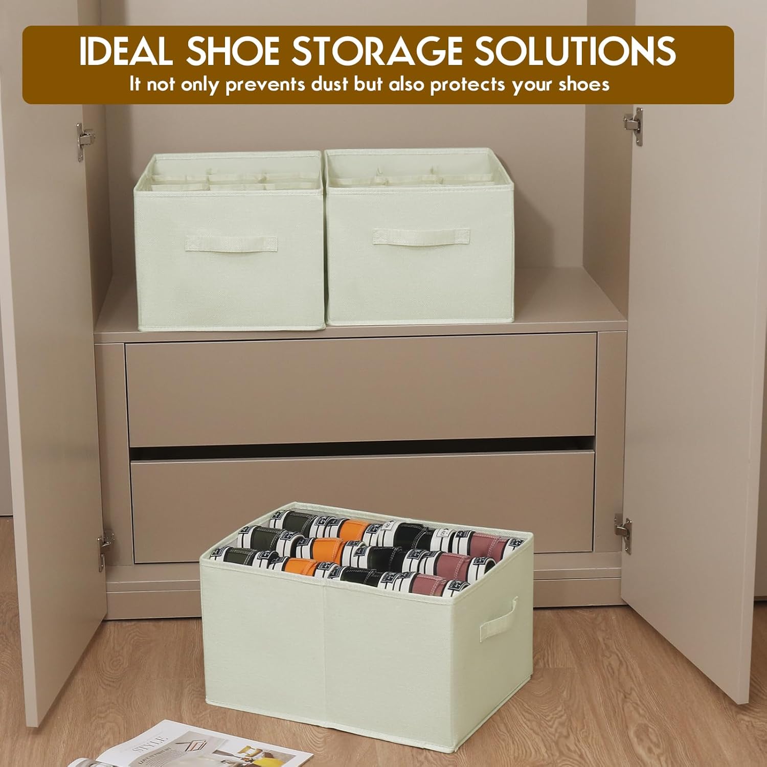 2 Pack Shoe Organizer for Closet – Fits up to 24 Pairs, Fabric Shoe Storage Bins, Cube Storage Cabinet Foldable Shoes Container with Reinforced Handles (Beige, 16.5″x12.6″x9.5″)