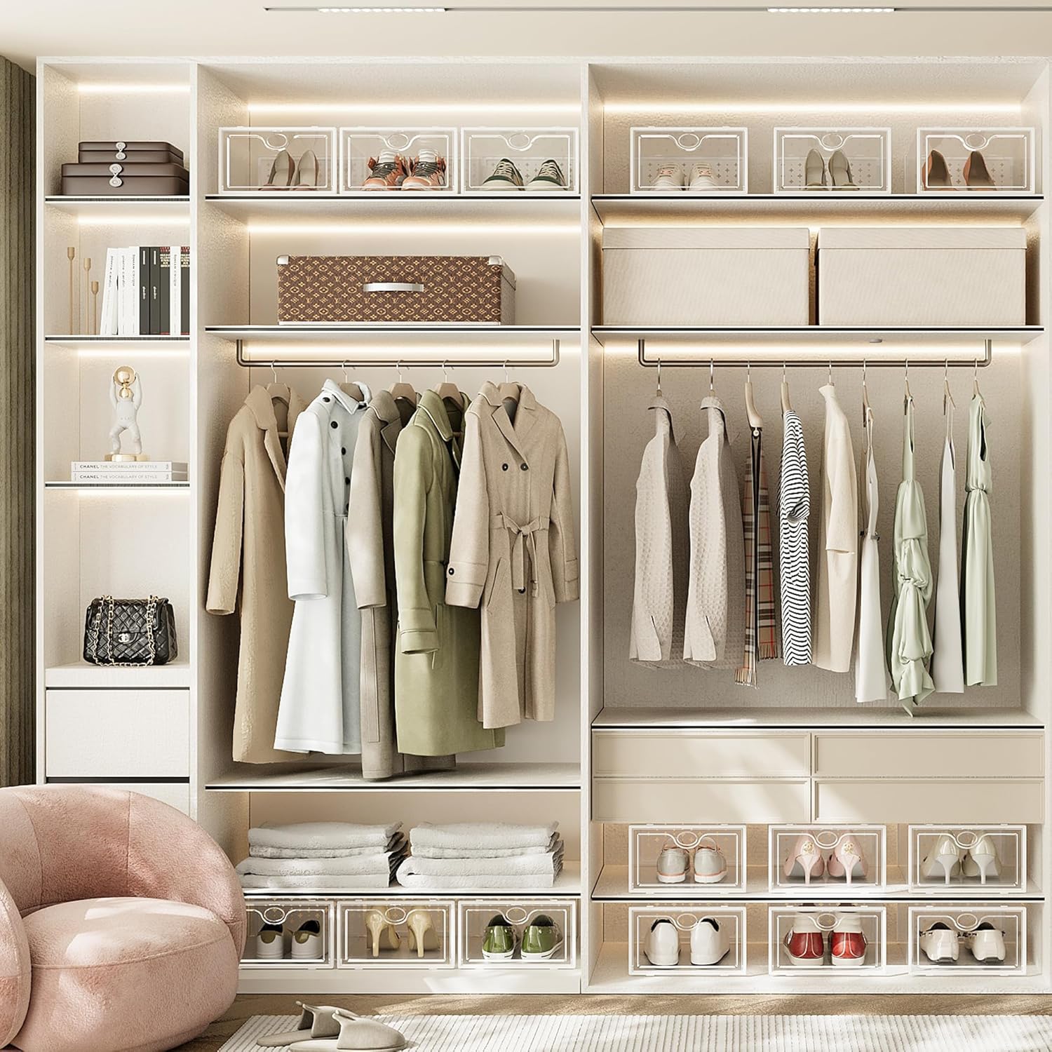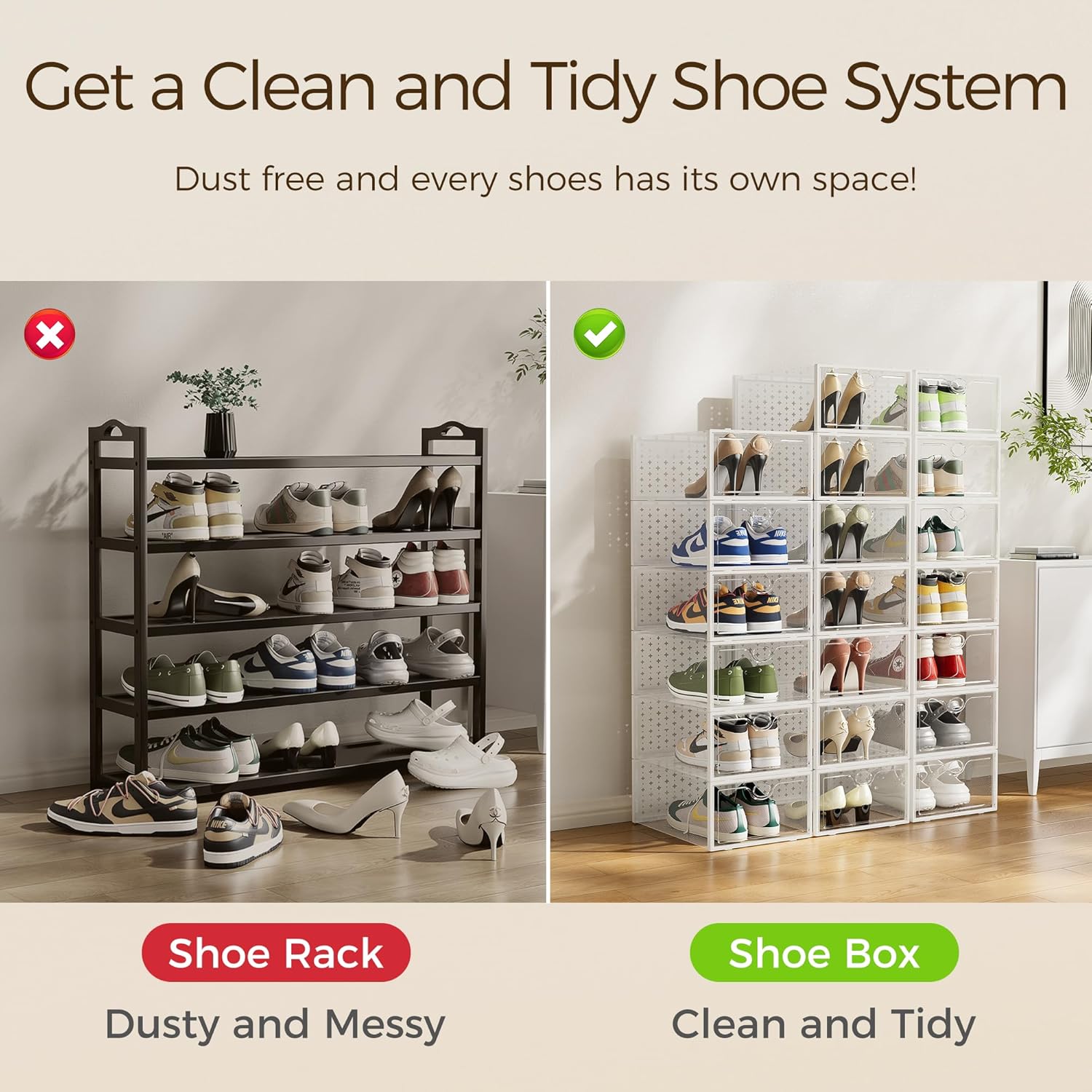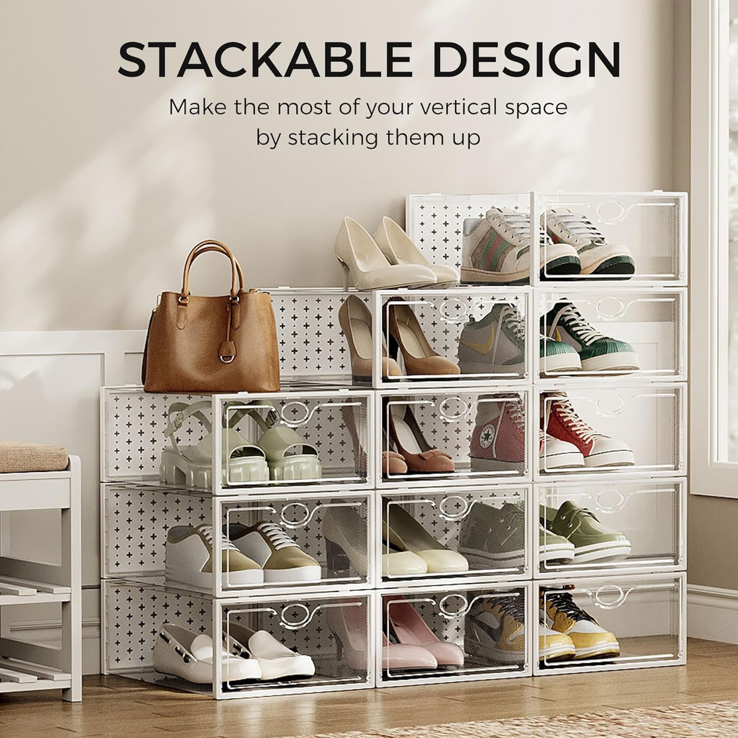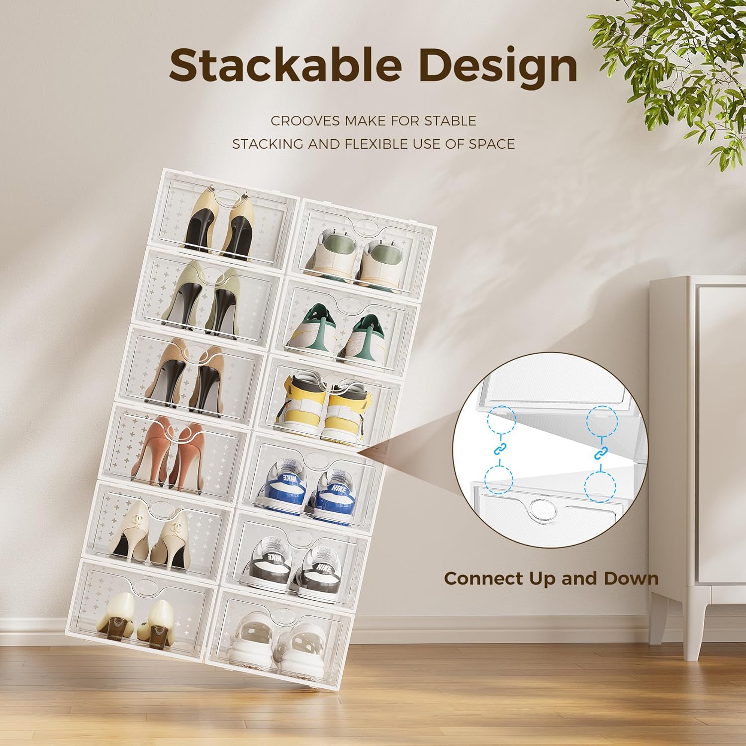 Pinkpum Shoe Storage Boxes, Shoe Organizer for Closet Clear, Shoe Boxes Clear Plastic Stackable, Folable Storage Bins with Lids, 12 Pack Sneaker Storage Box Shoe Rack Containers Bins Holders Cabinet