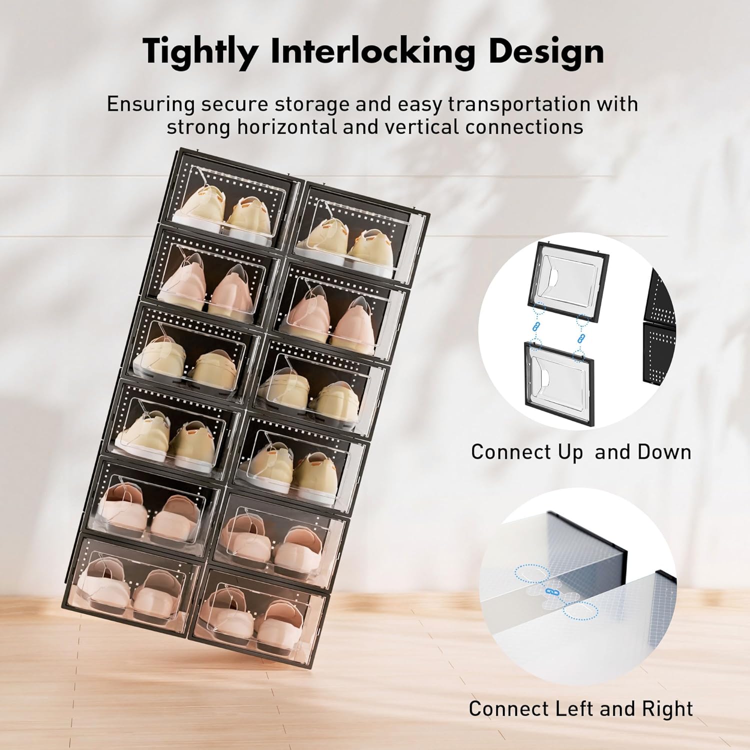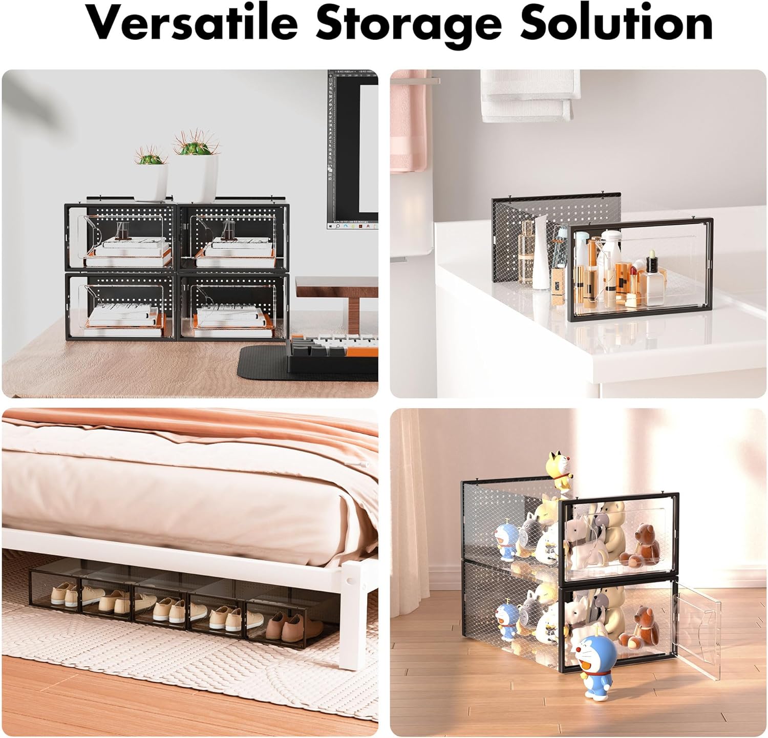 Not Only Shoe Storage: These stackable organizers prevent scattered shoes from collecting dust, keeping shoes neatly organized and maintaining order. They can also serve various home storage needs. The transparent front door lets you quickly locate your desired shoes or items