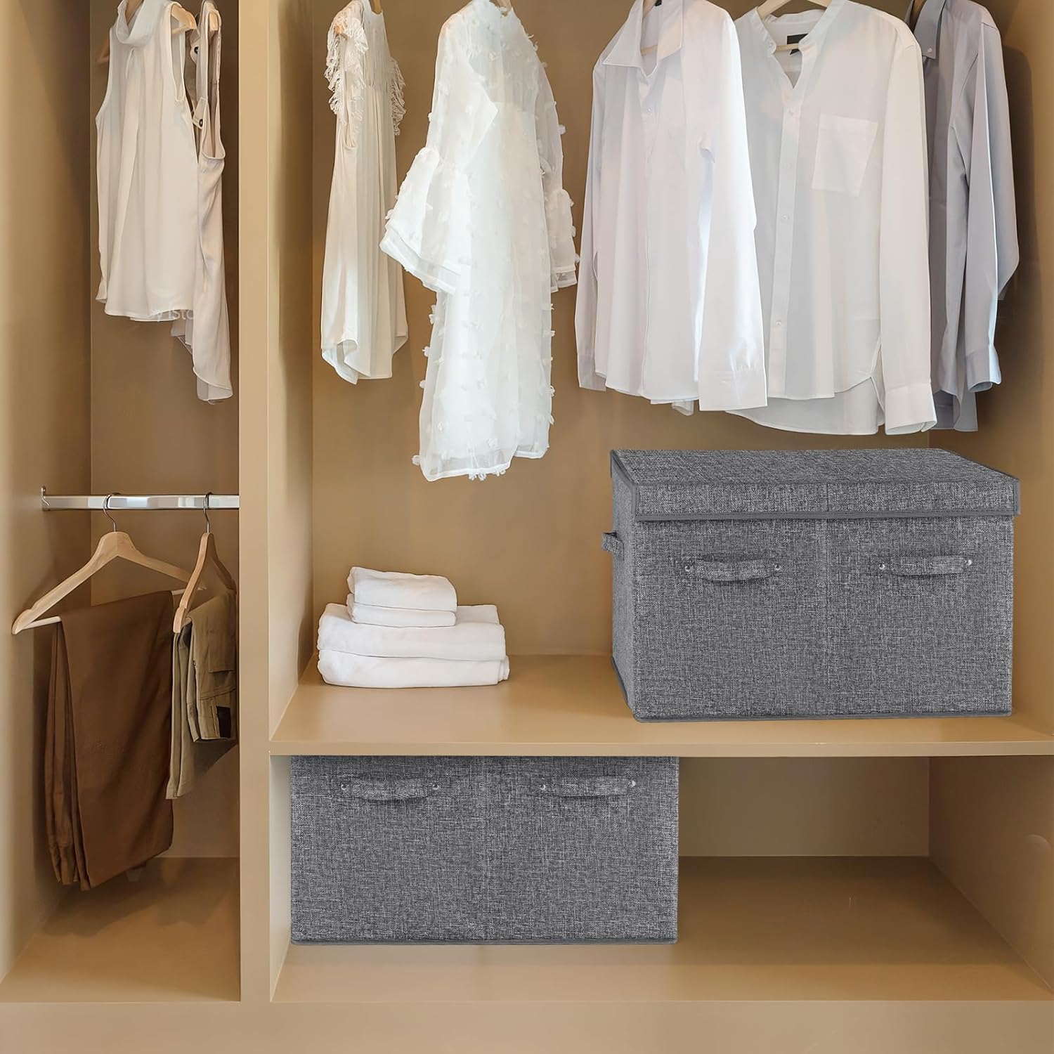 Shoe Storage Organizer for Closet Fits 16 Pairs, Large Shoe Storage Box Bins Containers with Lid and Adjustable Dividers for Shoes, Sneakers and High Heeled, Hard Shell and Stackable (Grey)