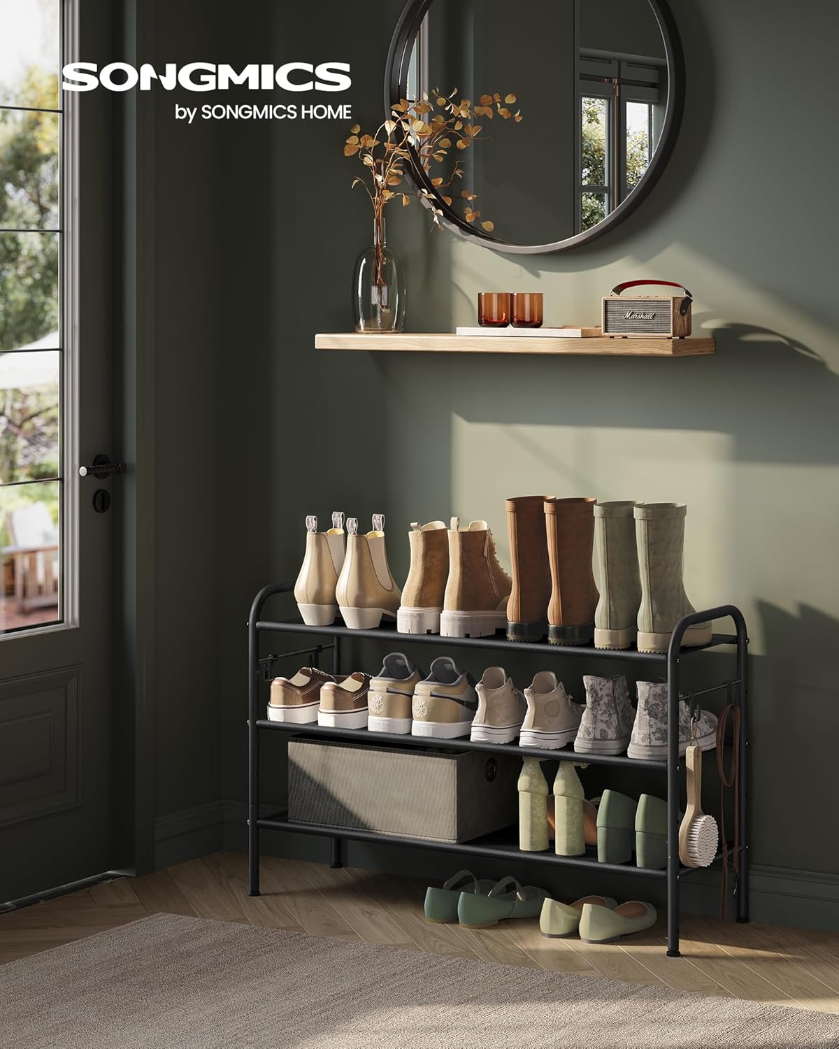 Be the first to review “SONGMICS Shoe Rack, 3 Tier Shoe Organizer, Fabric Shoe Shelf Storage with 4 Hooks, Holds up to 15 Pairs of Shoes, Height-Adjustable Shoe Rack for Entryway, Hallway, Closet, Easy Assembly, Ink Black”