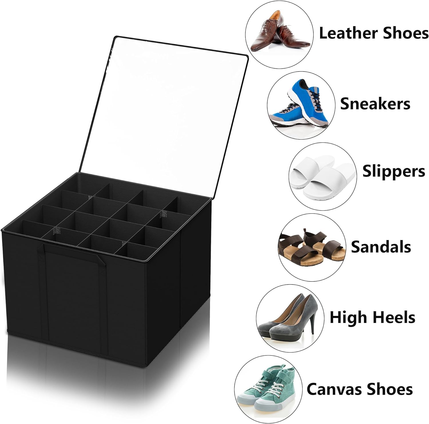 Shoe Storage Solution: These cube bins won’t take up too much space, the shoes are all vertical and compact inside, much more space saving than plastic shoe Containers. Perfect for shoe collector, big family or seasonal shoe storage, keeping shoes clean and dust-free.