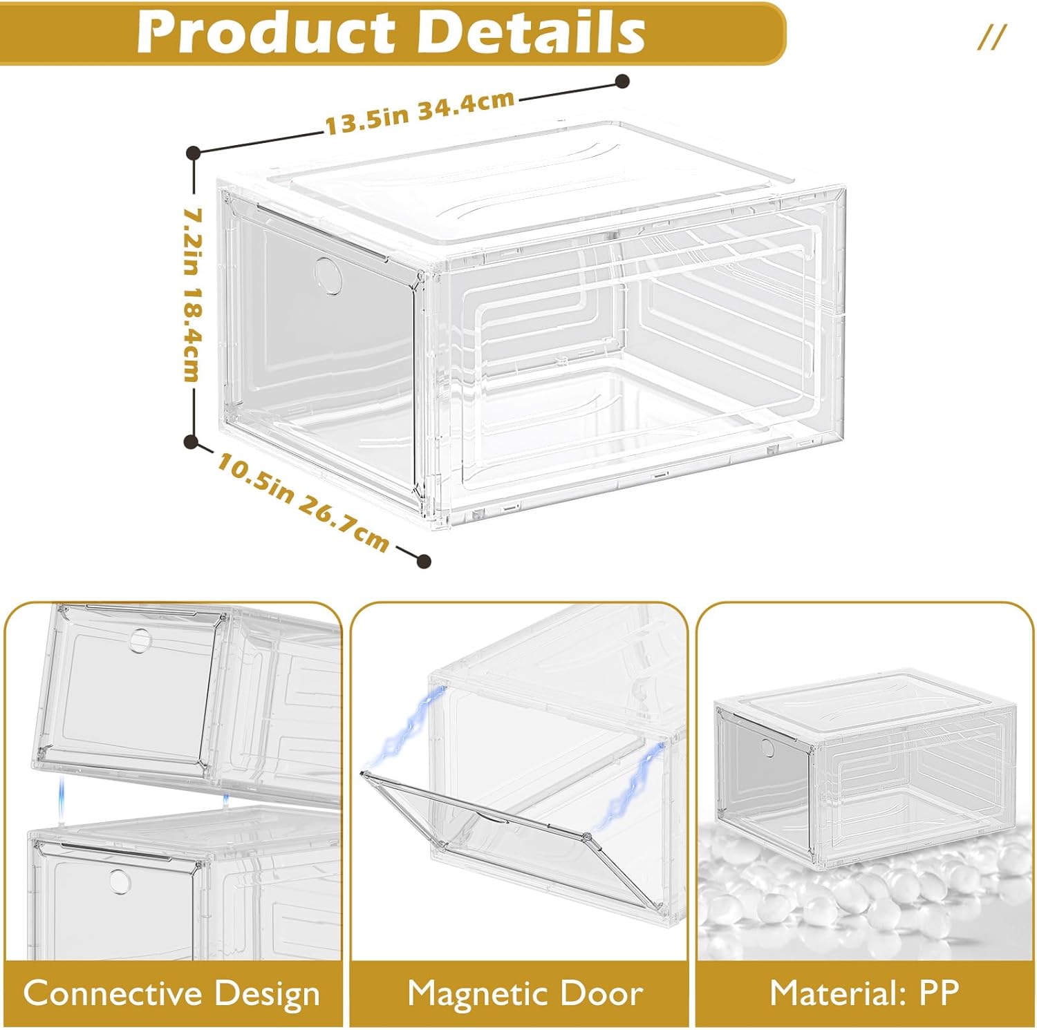 ✔Clear Shoe Boxes Stackable – Clear magnetic front door, stackable design, harder material, the shoe case provide you a more load-bearing multiple layers of shoe walls.No sliding,safe and stable. Stack easily on side and tops with pegs, you can connect them however you please.