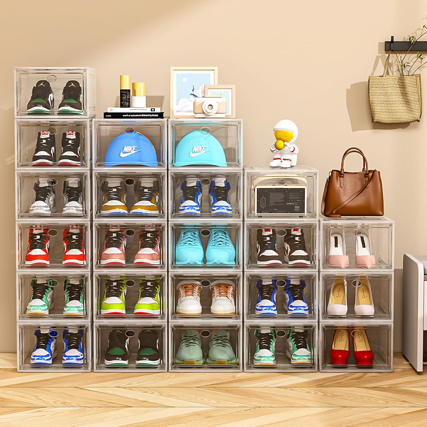 ✔Worry about assemble? – Each of our employees who have assembled our clear shoe box thinks it is so easy. By watching the installation notes, anybody can set up this shoe box organizer with ease.If you encounter any issues, please don’t hesitate to contact us at your convenience!