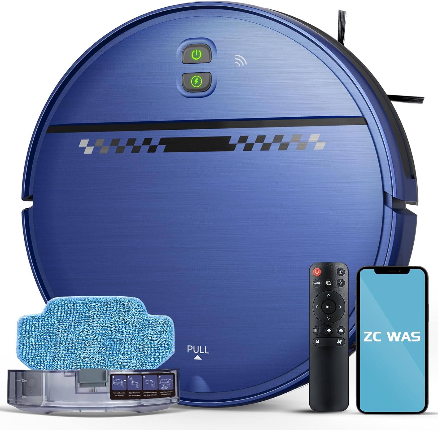 Robot Vacuum and Mop Combo, 2-in-1 Robot Vacuum Cleaner, Perfect for Pet Hair, Hard Floor and Carpet, Anti-Bump, Anti-Fall, App, Voice and Remote Control
