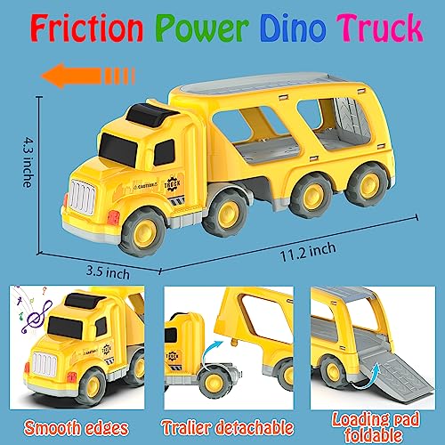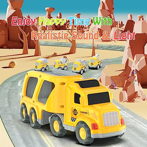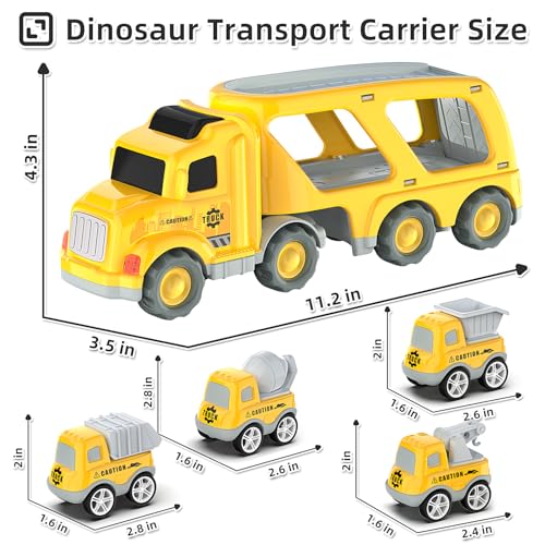 Toddler Car Toys for 3 4 5 Years Old Construction Transport Truck with 4 Pack Small Pull Back Construction Vehicles Friction Power Cars Christmas Birthday Gifts for Kids Boys Girls